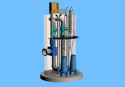 預制泵站是應用于排水系統(tǒng)中,因管道埋深太大,提高了造價,并處地下水位之下時,地下水滲入,還使維護管理工作不便等多方面的原因而設置。預制泵站的基本組成包括:排污泵、預制筒體、檢修平臺、格柵、控制系統(tǒng)和相關的管路附件。筒體尺寸及排污泵的選擇需要根據(jù)現(xiàn)場實際情況進行單獨設計。